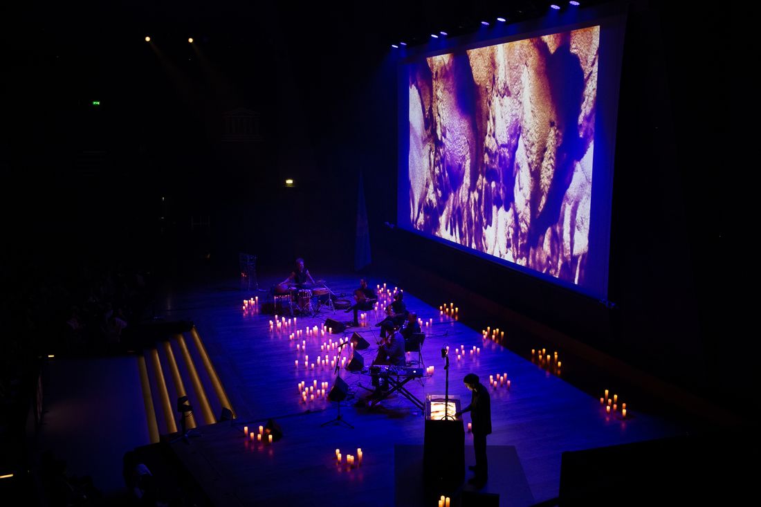 Sand art for concert with trio Joubran for UNESCO, Paris 2022