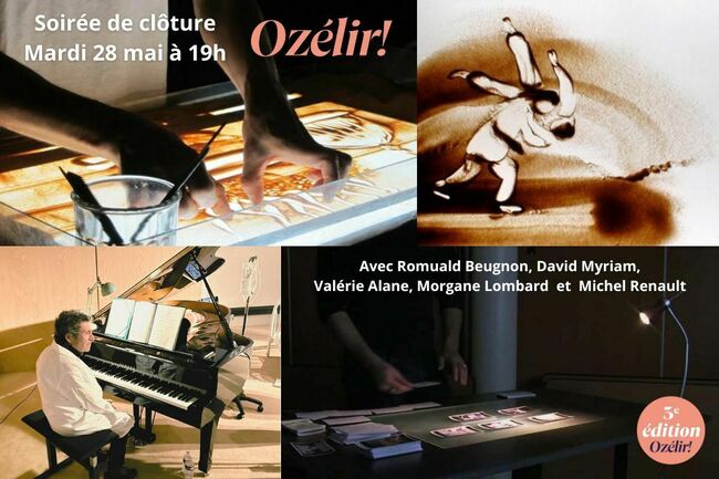 - Then an original creation combining readings of literary extracts on sport by actresses Valérie Alane and Morgane Lombard, musical improvisation by pianist Michel Renault, and sand drawing (30 minutes approx.)