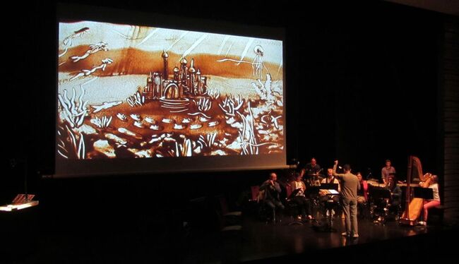 I as in October in Locminé to present a live sand drawing evocation (a ‘summary’) of two famous tale : The Little Mermaid by Hans Christian Andersen & Sleeping Beauty by Charles Perrault.
